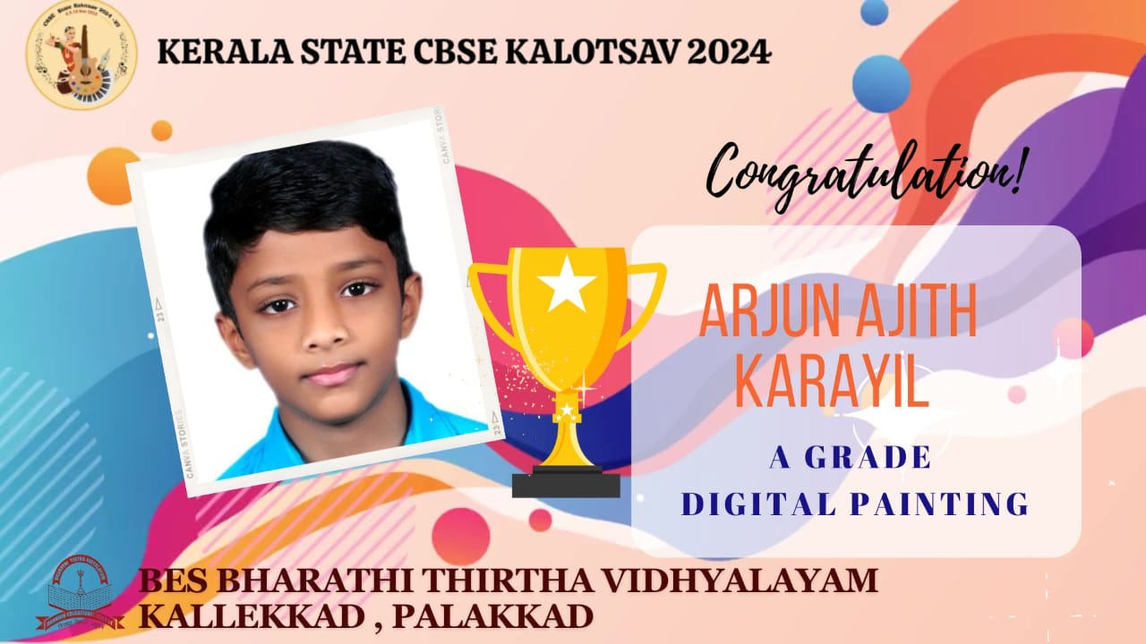 Arjun Ajith of class 3 secured the 2nd position in digital painting in Dist. Sahodaya Competition.