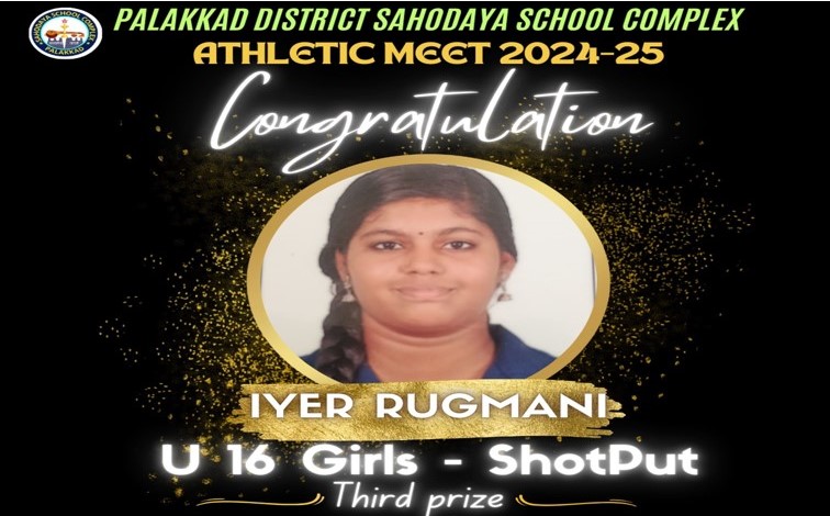 Iyer Rukmani of class 10 secured the 3rd position in shot-put in the Dist. Sahodaya Sports Meet .