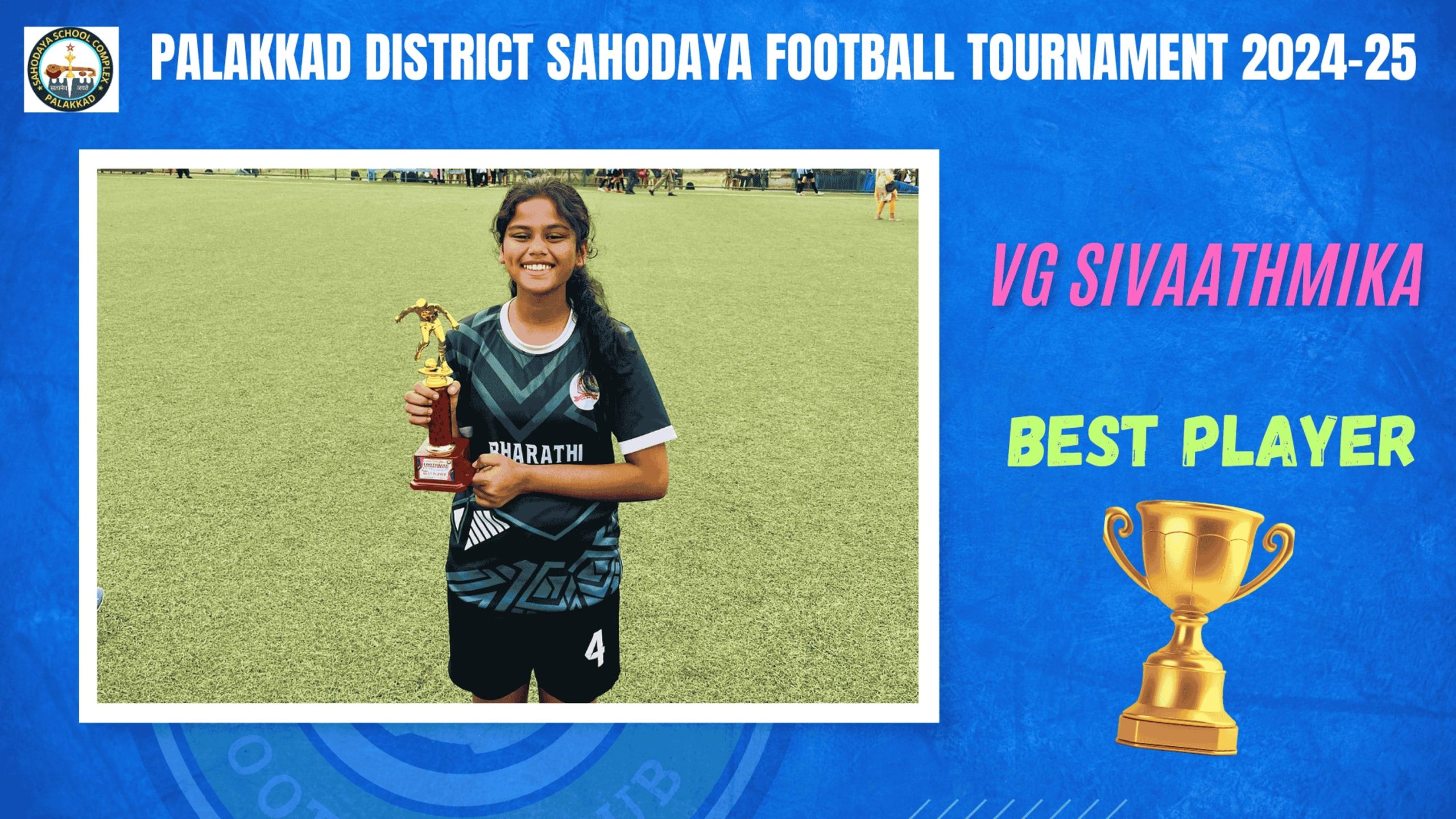 V G Sivaathmika of class 9 was declared as the Best player in Dist. Sahodaya Football Tournment and also she secured the 3rd place in Malayalam Recitation in the Dist. Sahodaya Literary Meet.